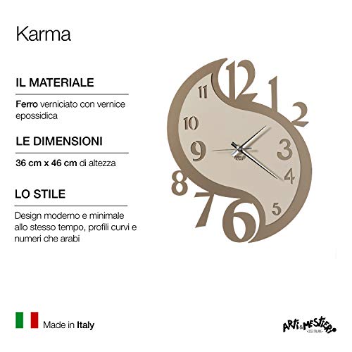 Arti & Mestieri Karma - Orologio da Parete di Design 100% Made in Italy - in Ferro - Bronzo, 36 x 46 cm e Sabbia