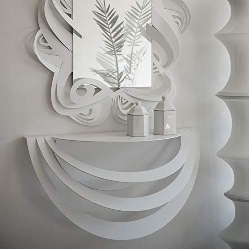 Consolle da fissare alla parete dal design moderno. Delle semi-ellissi in ferro partono dal basso e si alzano fino a creare una superficie orizzontale.
