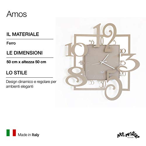 Arti & Mestieri Amos - Orologio da Parete di Design 100% Made in Italy - in Ferro, 50 x 5 x 50 cm - Beige