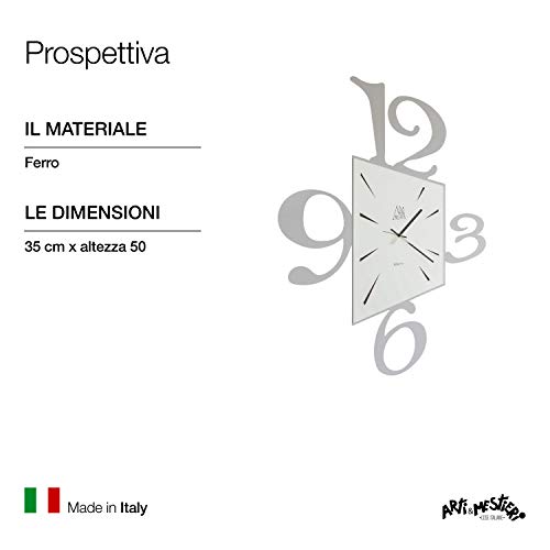 Arti & Mestieri Prospettiva - Orologio da Parete di Design 100% Made in Italy - in Ferro, 35 x 50 cm - Alluminio