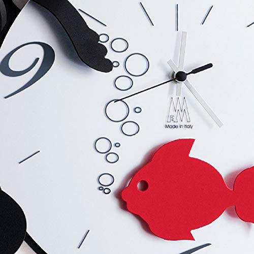 Un orologio ispirato al comportamento curioso e divertente del gatto soprattutto se vicino a un vaso con un mansueto pesciolino rosso. Un oggetto spiritoso perfetto per rendere vivace la casa di chi ama i gatti.