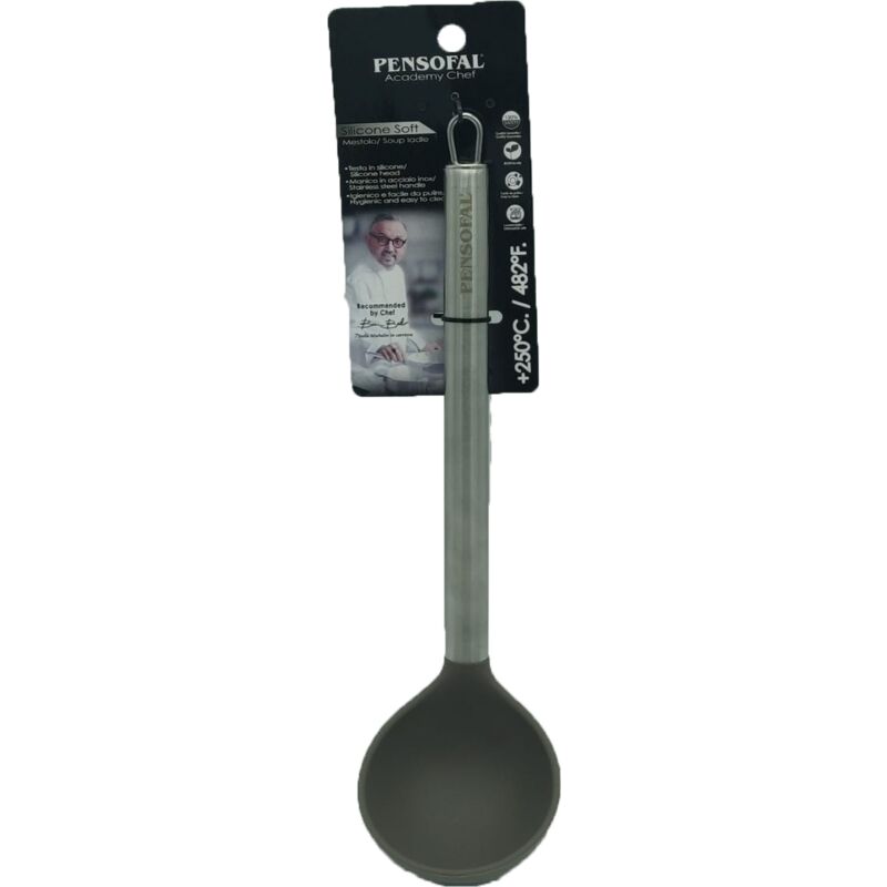 Il classico mestolo in silicone flessibile semirigido resistente al calore (250°C) prodotta con manico acciaio inox di altissima qualità ha un design esclusivo e curato in ogni dettaglio. Ideale per servire zuppe e liquidi senza correre il rischio di rovesciarli. L'utensile è immune all'attacco degli acidi, non assorbe né odor