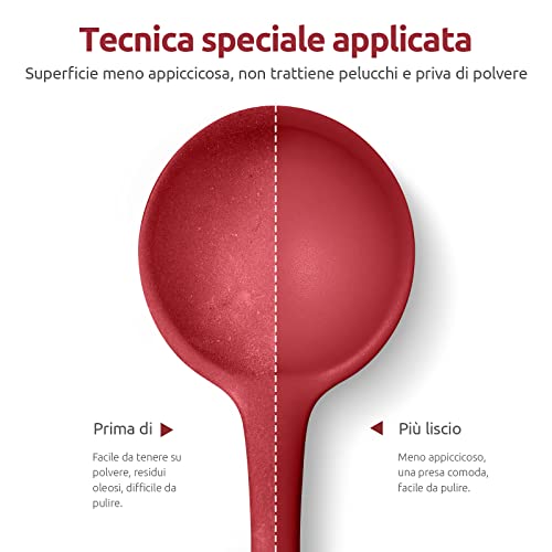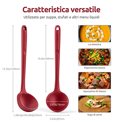 Mestolo da zuppa in silicone da 34cm: U-Taste 315℃ resistente al calore, antiaderente, gomma senza cuciture, cucchiaio da cucina grande con manico lungo e solido antiscivolo (Rosso)