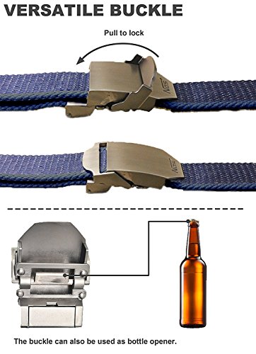 Fibbia robusta e versatile: realizzata in resistente lega di zinco, la fibbia è resistente ai graffi e facile da usare. Basta posizionare la cintura nel punto di tenuta e premere il fermo, fatto! Inoltre, la fibbia di questa cintura funge anche da apribottiglie.