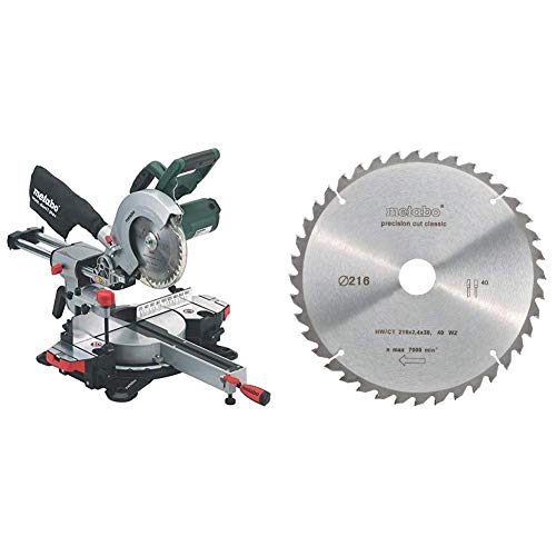 Metabo KS 216 M 619216000, Troncatrice a Trazione Radiale + Metabo 628060000 - Lama per sega circolare con CT 216 x 30 mm, 48 WZ 5 gradi