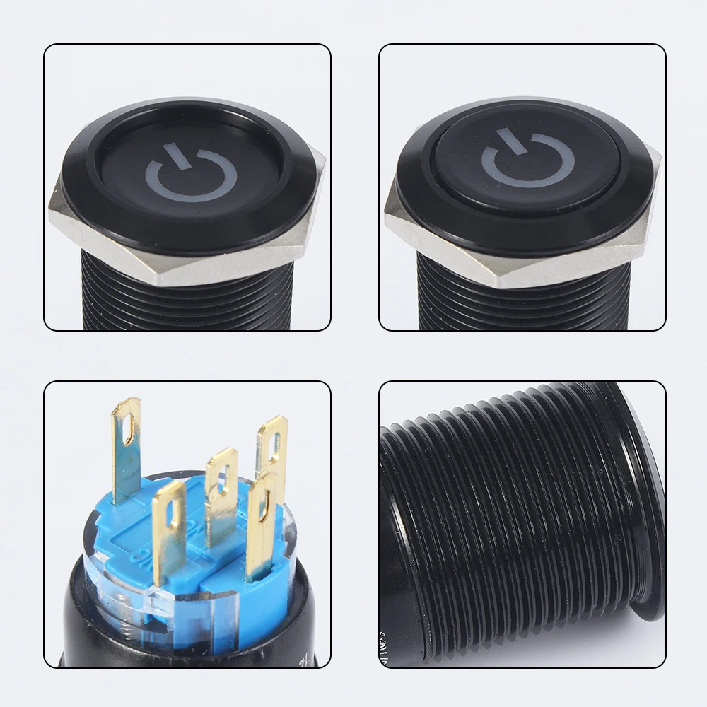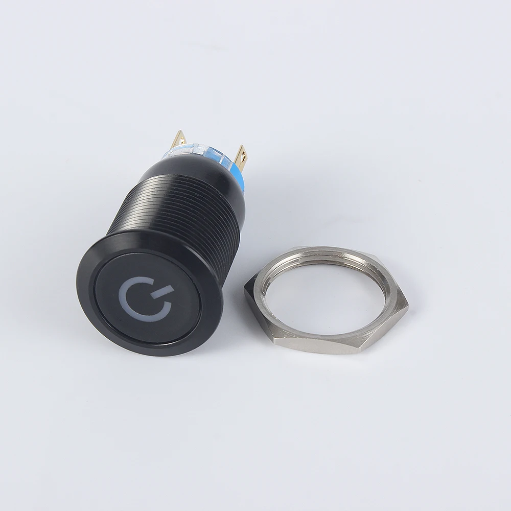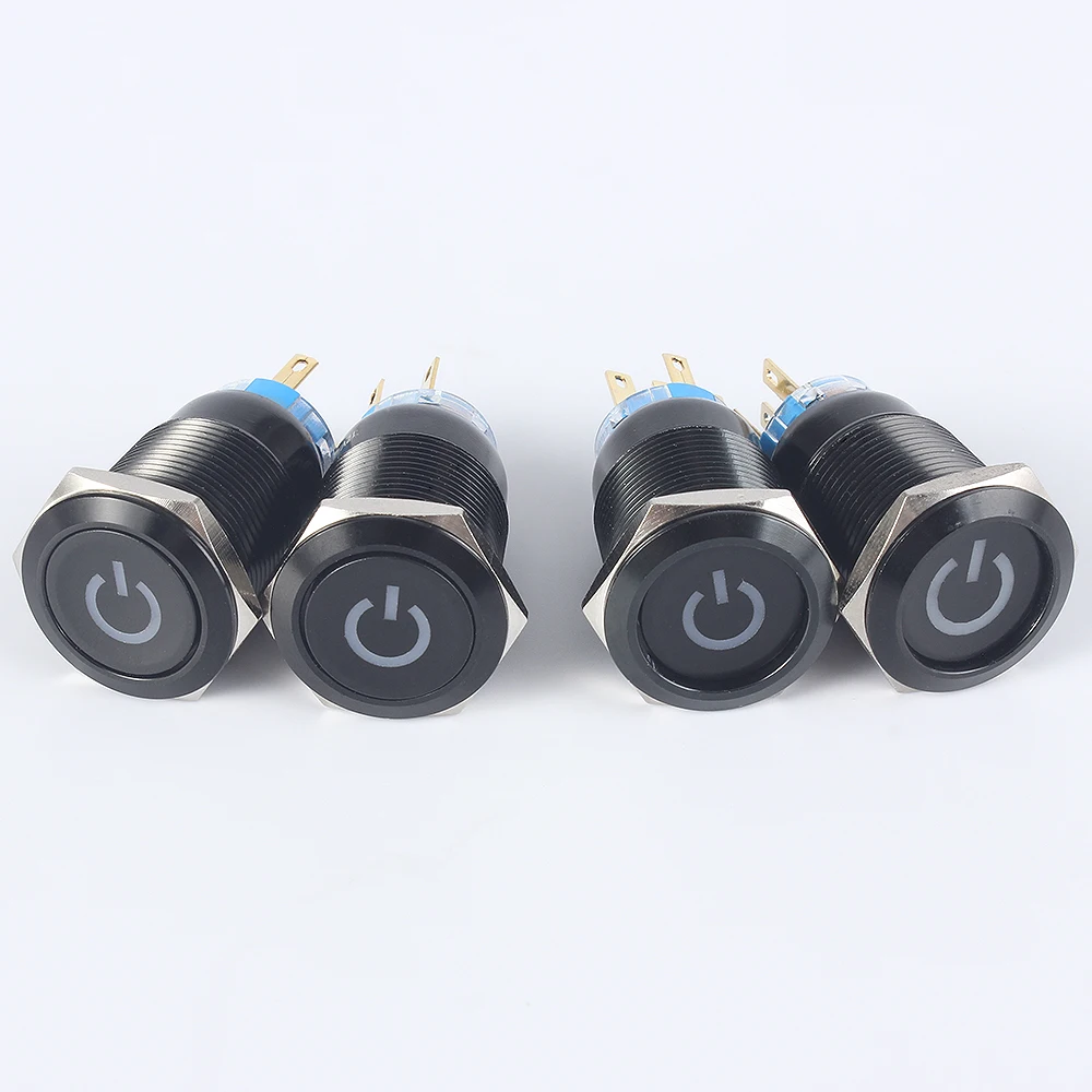 19mm Metal Alumina black press button Led power mark lamp button latching switch self-lock momentary Push ButtonSwitch 19DY.BK