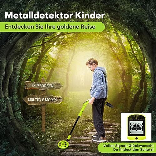 Metal Detector per bambini, rilevatore di metallo ad alta precisione con display LCD, rivelatore metallico leggero per bambini con manico regolabile, bobina di ricerca da 6"(verde)