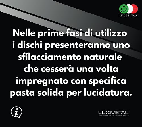 COME USARE IL DISCO LUCIDANTE? Montare il disco lucidatura Lux Metal sul vostro utensile (Nelle prime fasi di utilizzo i dischi presenteranno uno sfilacciamento naturale) applicare la pasta lucidante sul disco mentre gira finché non si sarà impregnato, Poi passare la ruota lucidatura sul particolare da lucidare. P