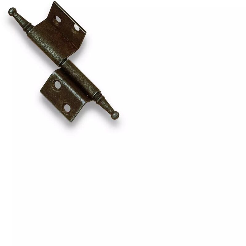 Cerniera per mobile da applicare piegata tipo ficcia in ferro finitura ottone antico. Ingombro mm.50x85. Versione destra.