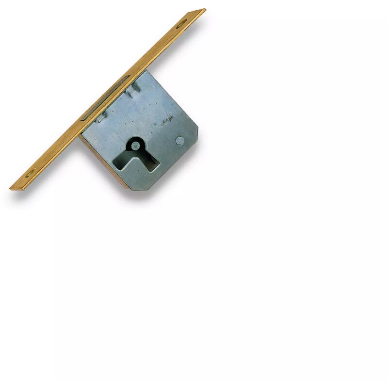 Serratura per mobile da infilare bordo quadro ottone (mm.100x18), scatola in ferro,passo N chiave piccola. Entrata mm.20. Versione sinistra.