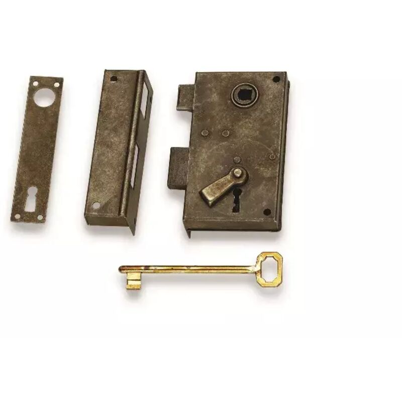 Serratura per porta interna da applicare a redosso a scatola in ferro completa di chiave e riscontro. Entrata mm.45 Q.8. Versione sinistra.