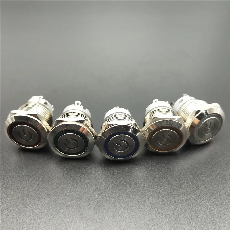 19mm Metal Power mark brass Push Button Switch flat round illumination Momentary self reset 1NO
