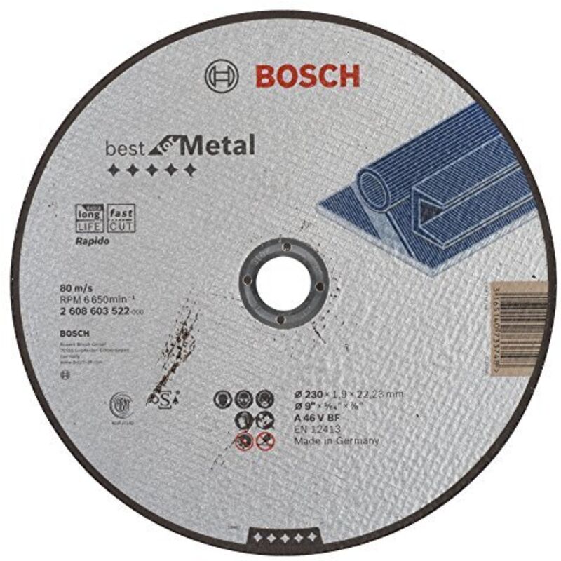 Descrizione Bosch Disco a taglio a mozzo piatto Best for metallo - rapido - Ø 230 x 1.9 mm - Diametro Del Foro 22.23 mm Caratteristica tecnica accessorio Bosch Professional - 2608603522 specifica: a 46 V BF - Diametro mm: 230 - Foro mm: 22,23 - Spessore mm: 1,9