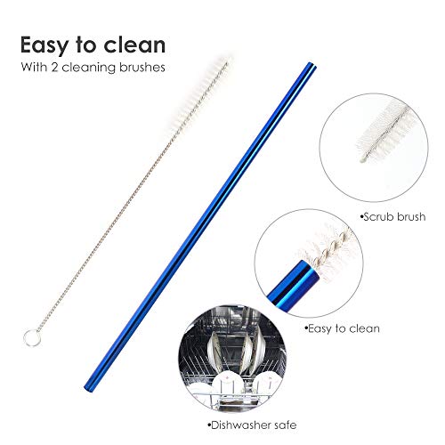 Metal Reusable Straws, Stainless Steel Drinking Straws with 2 Cleaning Brush for Smoothie Milkshake Cocktail And Hot Drinks 8 Pieces (Blue)