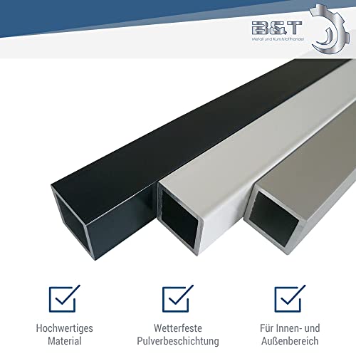 B&T Metall Tubo quadrato in alluminio anodizzato, 40 x 20 x 2 mm, argento anodizzato, E6/EV1, lunghezza circa 2 m. (2000 mm + 0/- 3 mm)