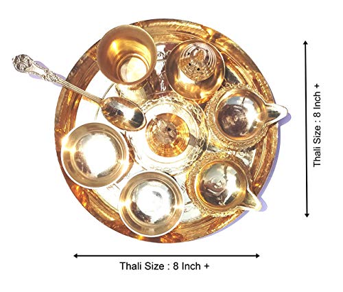 METALLIC INDIA Premium Brass Pooja Thali Set 20,8 cm, decorazione Puja Thali per Tempio, Casa, Ufficio, Festival e Diwali Regalo