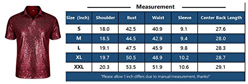 Uomo Metallico Argento Camicia Nightclub Stili Paillettes Manica Corta Polo Camicia Lucida Slim Fit Discoteca Dance Tops Costume Partito Clubwear Halloween/Cosplay Costume,Black,XXL