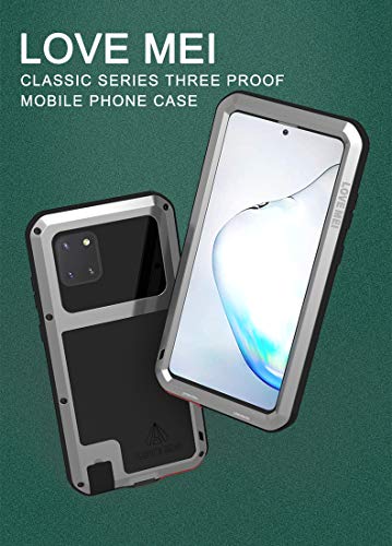 Love MEI Metallo Custodia per Samsung Galaxy Note 10 Lite 2020,Outdoor Heavy Duty Robusto Alluminio Metallo con Vetro Temperato Antipolvere/Impermeabile/Antiurto Protettiva Custodia (Argento)
