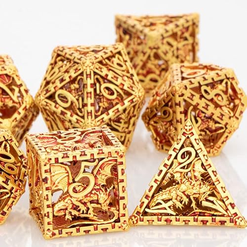 Set di dadi DND in metallo Dungeons and Dragons Dadi KERWELLSI 7pcs RPG Gioco di ruolo D&D Dadi Set D20 D12 D10 D8 D6 D4 Unico D+D Hollow Polyhedral Dadi Set con scatola per MTG Pathfinder Warhammer