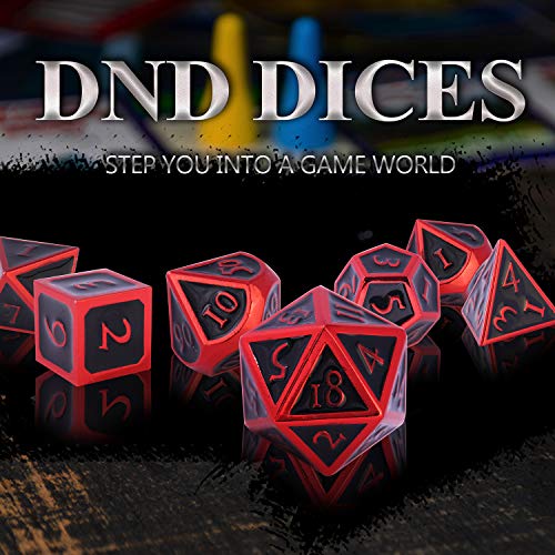 Dadi D&D Metallo Set Dice da Gioco, 7 Pezzi DND Dadi Poliedrici Metal RPG Dadi per Dungeons & Dragons Gioco di Ruolo, con Custodia Imbottita (Red & Black)