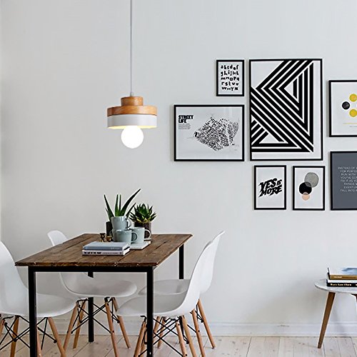 E27 Metallo Lampada a Sospensione Industriale Moderno, Lampadari Creativo Plafoniera Legno Illuminazione (Bianco)
