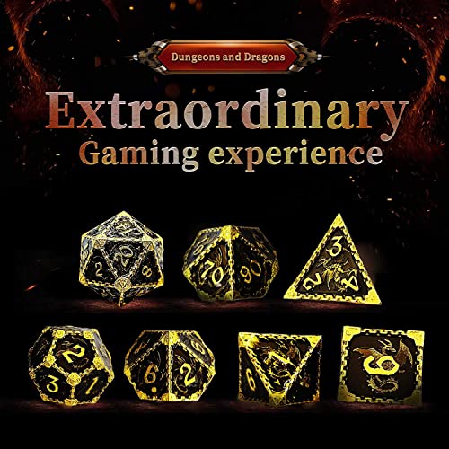 Dadi Metallo D&D, Dadi Metallici RPG, Dadi Poliedrici, Dadi Gioco di Ruolo, Set Dadi D&D, Dungeons & Dragons Set Di Dadi, Dadi Pathfinder, Cthulhu Dadi, D&D Dragon, Dungeons Dragons (Oro antico)