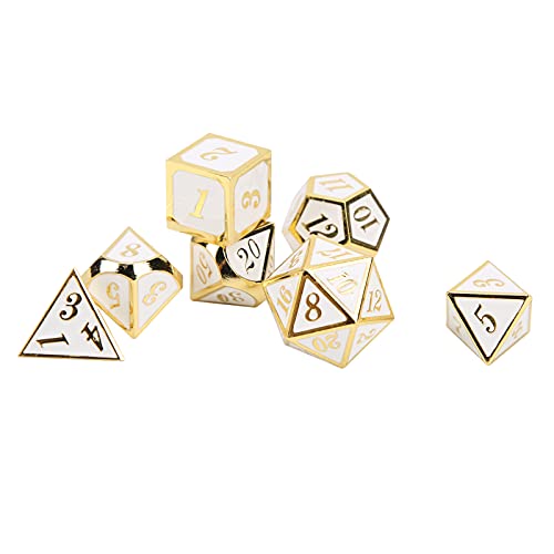 Set di Dadi in Metallo DND, 7 Pezzi Set di Dadi Poliedrici Set di Dadi in Lega di Zinco D&D DND Dadi Poliedrici per Dungeons And Dragons Giochi di Ruolo Giochi da Tavolo Giochi da Tavolo(Oro bianco)