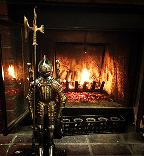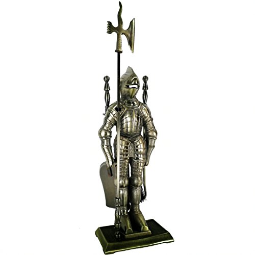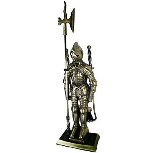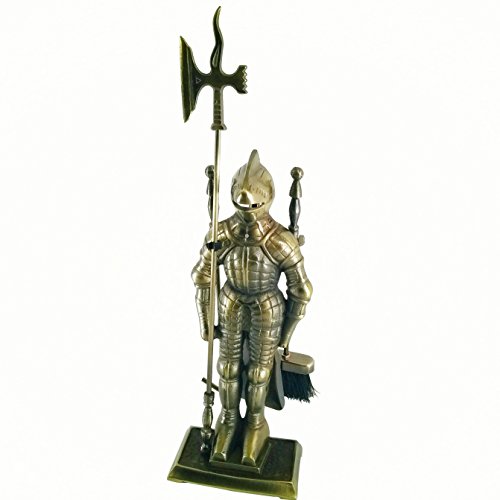 Lizh Metalwork Set di strumenti per camino a forma di cavaliere dallo stile medievale, in ghisa/ottone anticato