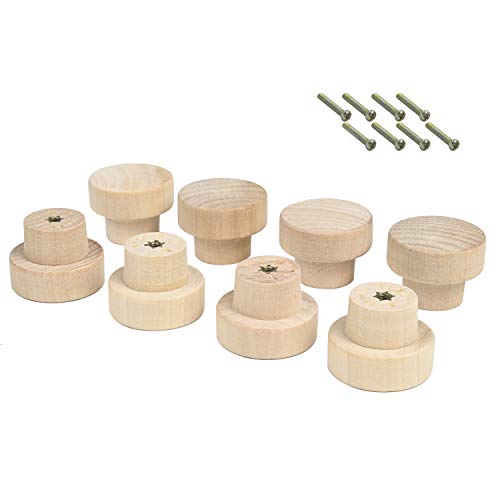 Metany 8 pomelli rotondi in legno per cassetti, cassettiere e cassetti da 33 mm di diametro, maniglie con viti per cassetti, armadi, comò (colore legno non finito)