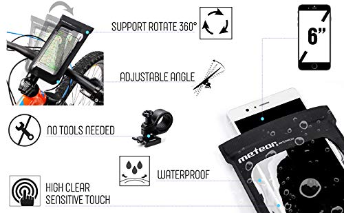 Meteor Borsa da Manubrio per Biciclette Borsone Bici Cellulare Supporto da Porta Smartphone Impermeabile 360° Rotazione con Dimensione Inferiore a 6" Sacchetto con Sensibile Touchscreen (Crib)