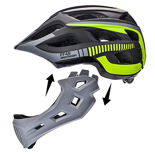 Meteor Casco Bici Ideale per Giovani con Mento Staccabile - Caschi Perfetto per Downhill Enduro MTB BMX Scooter Helmet per Tutte Le Forme di attività in Bicicletta FF49 (M(48-56cm), Green)
