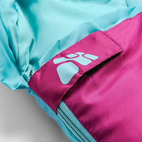 Meteor Sacco a Pelo Mummia Ideale per Bambini - Campeggio Viaggio Escursioni Trekking Albergo Treno - leggero Compatto Confortevole con Sacco a Compressione YMER ((130 + 25) x 60/40 cm, Viola/menta)