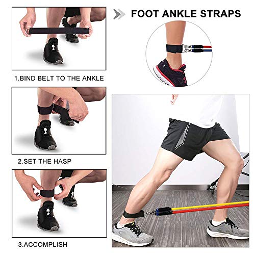 FASCE DI RESISTENZA REGOLABILI A COLORI DIVERSI: Giallo (10 libbre), Blu (25 libbre), Verde (15 libbre), Nero (30 libbre), Rosso (20 libbre). Tutte le bande di allenamento sono lunghe 48 ", e può essere utilizzato da solo impilato in qualsiasi combinazione per un equivalente massimo di 150 libbre.