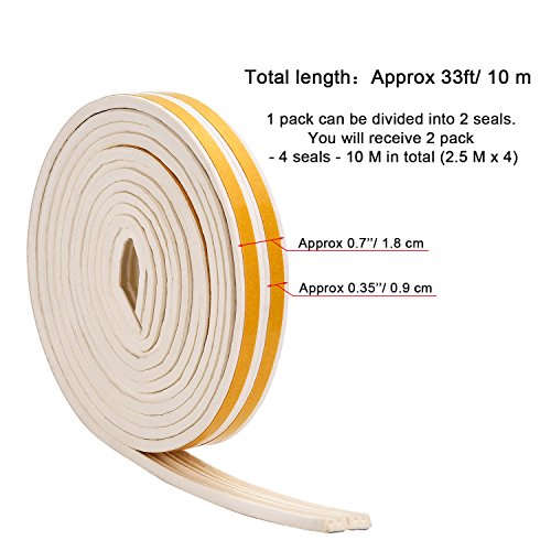 Set di Meteorologico Strisce Nastro Autoadesive Striscie Antigraffio Strisce Meteorologiche Nastro di Sigillo per Auto Porte Finestre Scorrevoli Porte (33 Piedi, Bianco)