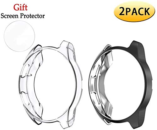 METEQI [2-pezzi] Soft TPU Protettiva Custodia Compatible per Samsung Galaxy Watch 42mm 46mm(Not for Galaxy Watch 4 Classic) (46mm, Nero/Clear)