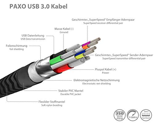 Cavo USB di tipo C 30cm / 0,3 Meter USB auf USB Typ C Kabel, USB 3.0, schwarz