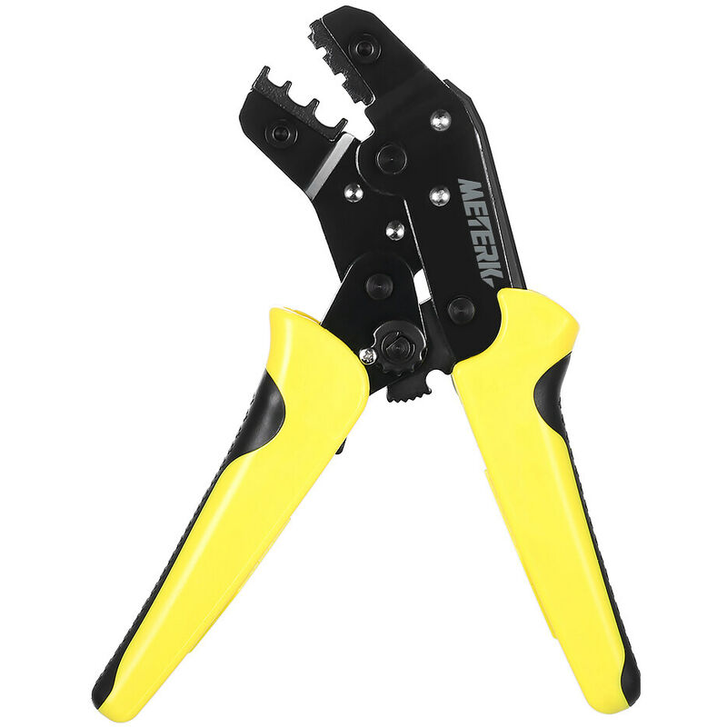 Cet outil de sertissage de fil professionnel et pratique avec pince à sertir auto-réglable offre commodité, efficacité et innocuité pour les âmes de câble. Il est facile à utiliser, il suffit de tenir la poignée et de la manipuler une fois pour bien serrer le fil et les borniers. Spécifications: < br /> Marque: Meterk Modèle: JX-D4 Matériau: Acier à haute teneur en carbone + Alliage Couleur: Jaune + Noir Terminaux et amp ;