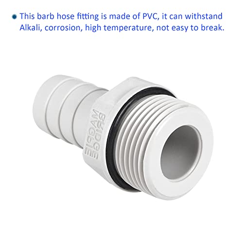 M METERXITY 2pz Dentellato Tubo flessibile Raccordi - PVC Tubo Connettore per Trasporto Acqua, Aria, Applicare a Macchinari, Industria (0.63" Dentellato x 3/4" G Maschio Filo, Grigio)