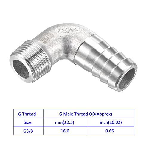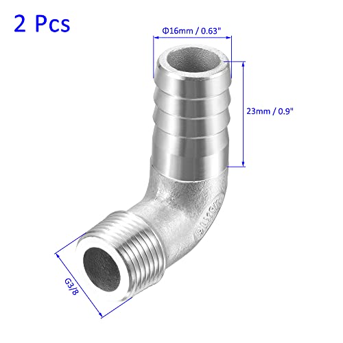 M METERXITY 2pz Tubo Uncino Raccordi - 90 Gradi Gomito Inossidabile Acciaio 16mm Tubo Connettore Applicabile a Acqua Carburante (G3/8 Maschio Tubo)