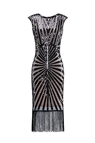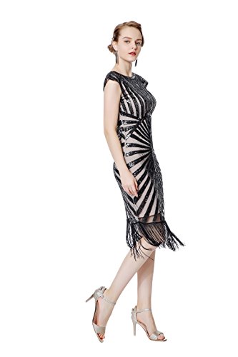 Metme Donne 1920s Frangia di abito da cocktail lungo in rilievo classico impreziosito per cocktail Gatsby Party