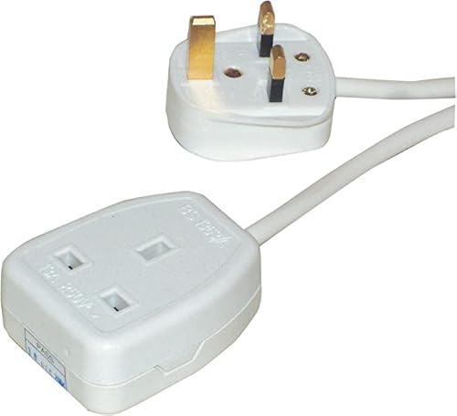 2 metri 1 estensione gang con cavo montato e 13 A spina UK borsa da appendere - bianco