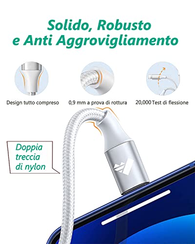 【Design robusto】Il nylon intrecciato consente di avere un prodotto resistente, solido, robusto e anti aggrovigliamento. non più impigliarsi con cavi tradizionali usurati e strappati. Il cavo usb c 2 metri ricarica rapida Cavetto ha superato più di 20.000 test con una curvatura di 90 gradi, Non sono stati riscontrati danni o variazioni di prestazioni