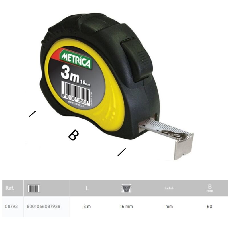 Flessometro METRICA modello Rubber Touch MT 3 X 16 MM con speciale gancio mobile, rivestito all'interno con gomma alettata che facilita e aumenta la presa . Il Nastro è protetto con speciale rivestimento in nylon, di lunga durata, antiabrasione, antiacido ed antiriflesso . Numerazione gigante per una lettura facilitata Cassa con superficie rivestita in gomma antiscivolo, bloccaggio a scatto e rientro automatico, con ammortizzatore . Clip nella parte retro per permettere all'utente di avere sempre a portata di mano il flessometro Rubber