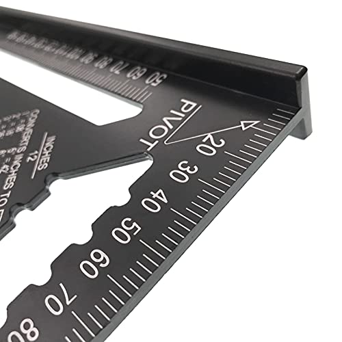 JZK Metrico e imperiale righello triangolare squadra alluminio 30 cm, goniometro quadrato 12 pollici, squadrette da carpenteri nere, strumento di misurazione angolare per falegname, ingegnere
