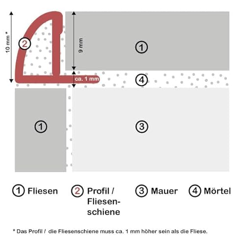 Profilo piastrelle per piastrelle in acciaio inox V2A di alta qualità e inossidabile | Superficie: satinate