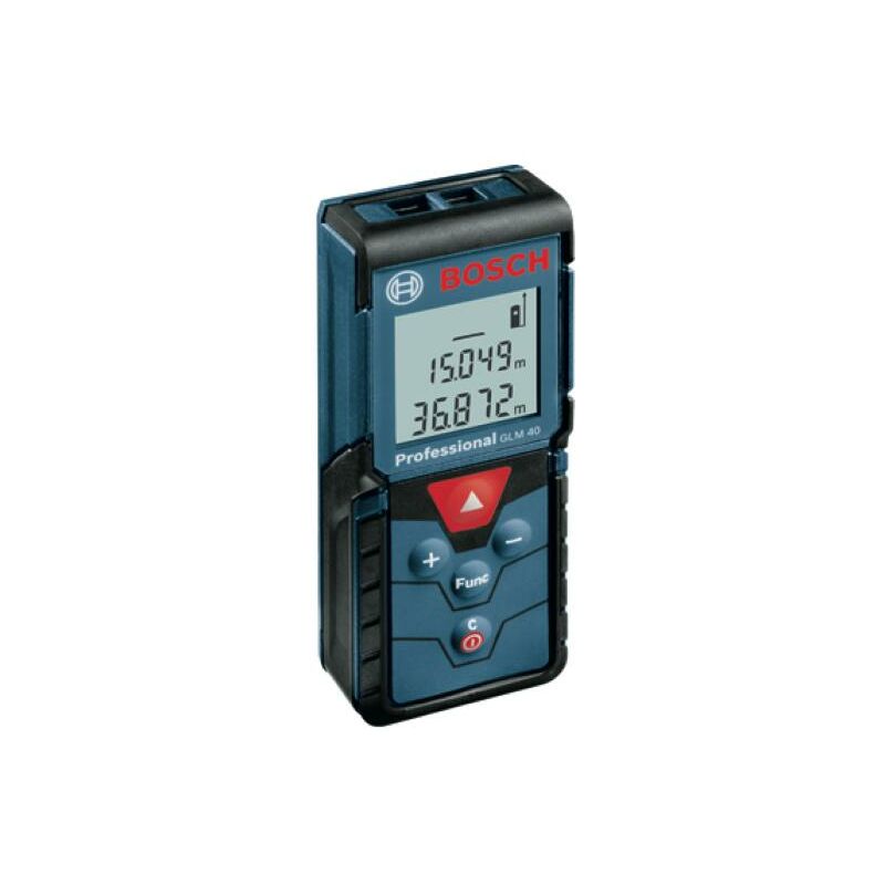 Portata: 0,05-40 metri. Precisione tipica: +/- 1,5 mm., funzioni: area, volume, misurazione continua, misurazione frontale e posteriore, addizione e sottrazione di misure, una sola funzione per tasto. Dimensioni tascabili 6x3x10 cm.