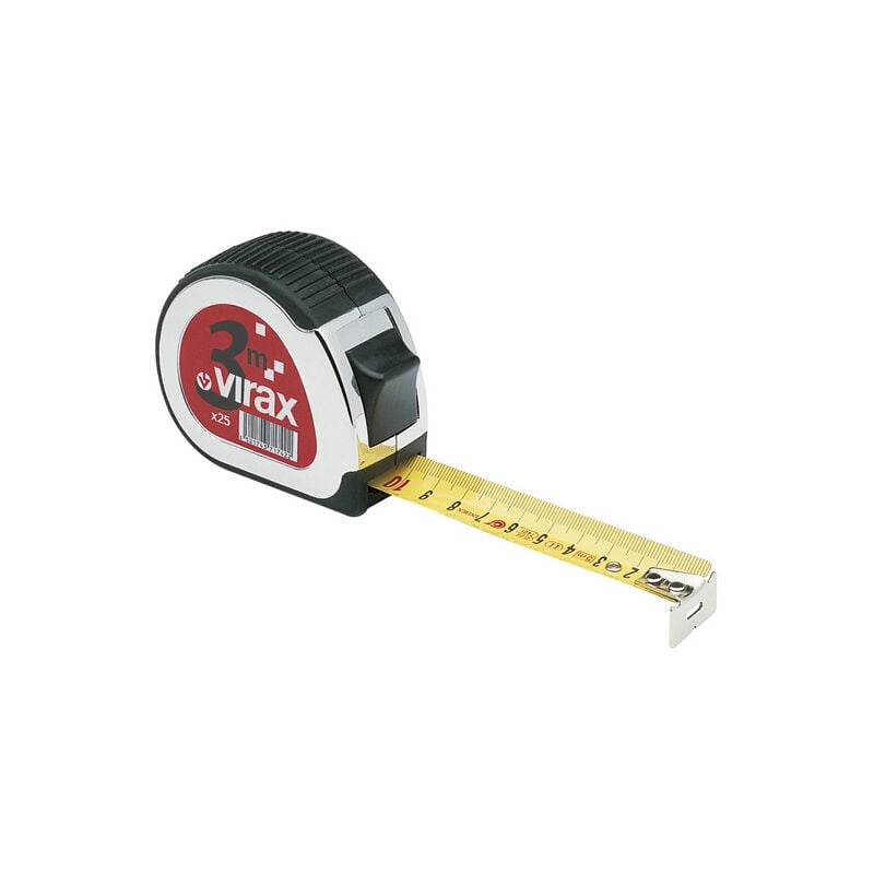 Dettagli: Metro graduato di precisione di classe II. Estremamente robusto. Custodia in doppio materiale cromo/gomma per una resistenza ottimale agli urti e una presa confortevole. Gancio fissato da 2 rivetti sul nastro da 19 mm e da 3 rivetti sul nastro da 25 mm per un uso intensivo. Pulsante di bloccaggio per la massima facilità d'uso. Clip da cintura integrata.