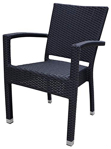 METRO Professional Sedia da esterno Barbados con braccioli, alluminio/PE rattan, impilabile, resistente alle intemperie, nera, ideale per giardino, balcone o terrazza