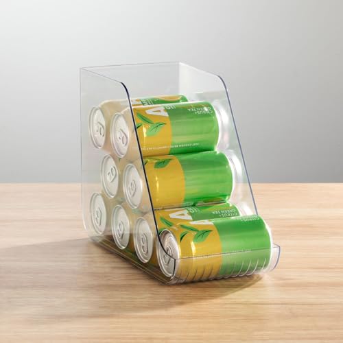 MetroDecor mDesign - Organizer per lattine per dispense, cassetti frigorifero e ripiani frigorifero, per riporre fino a 7 lattine di soda, cibo o zuppe, accessori da cucina, trasparente