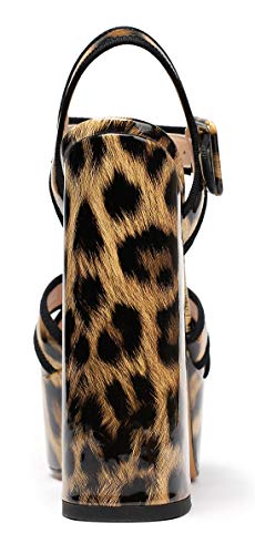 Mettesally Scarpe con Plateau Donna,Sandali con Plateau Donna,Sandali con Cinturino alla Caviglia Donna,Leopard,EU36